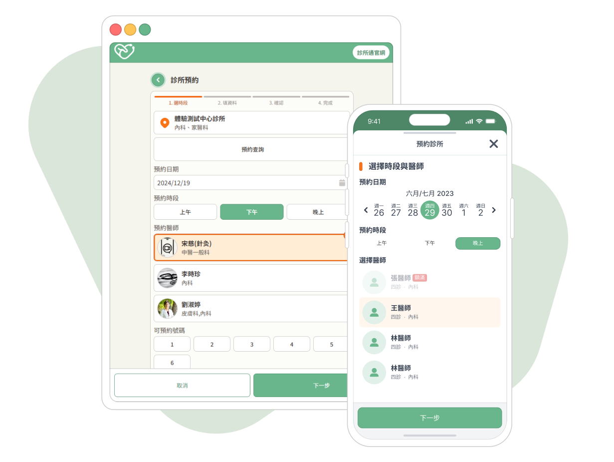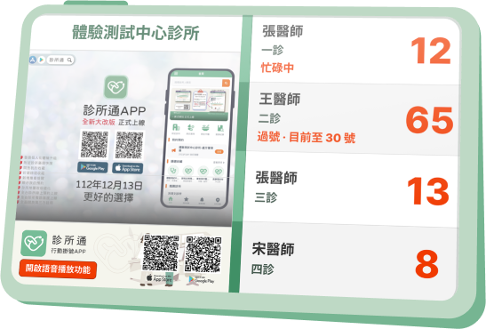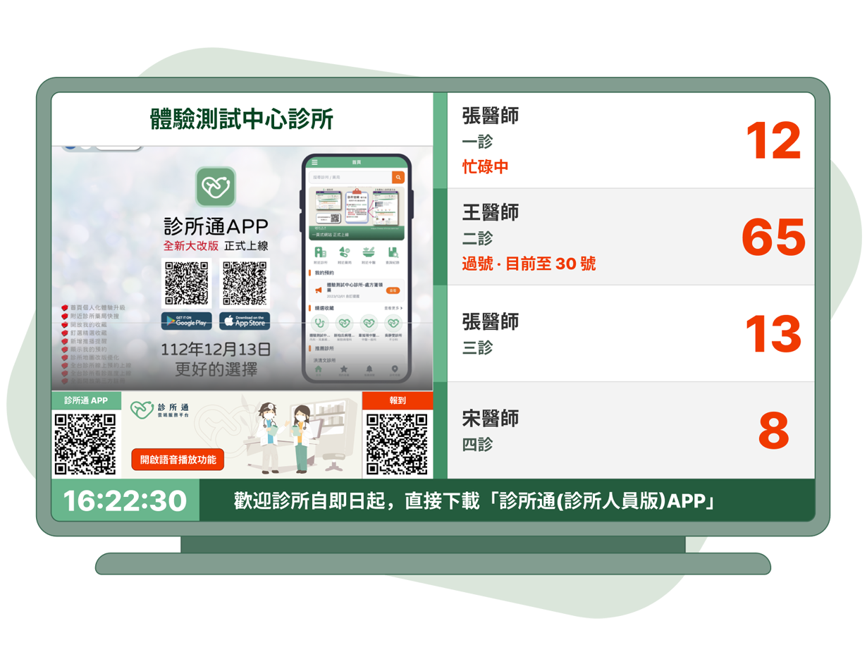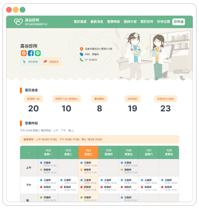 每月班表、休診公告、自費項目、醫師文章,將在 APP、網頁版同步輪播,強化診所曝光