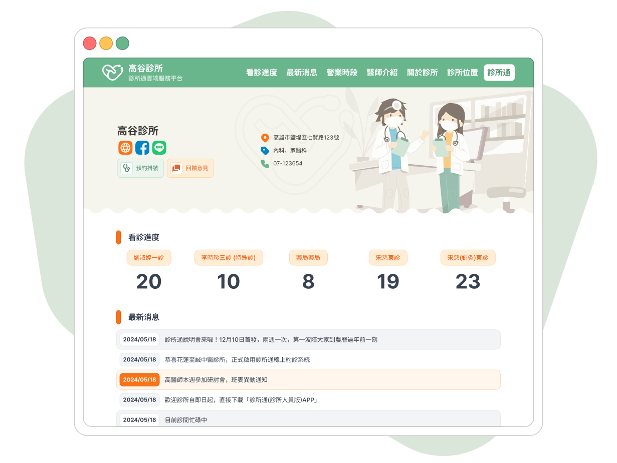 提供診所免費使用網頁版微型官網,全面整合數位化資訊,實現一站式搜尋,更加便利